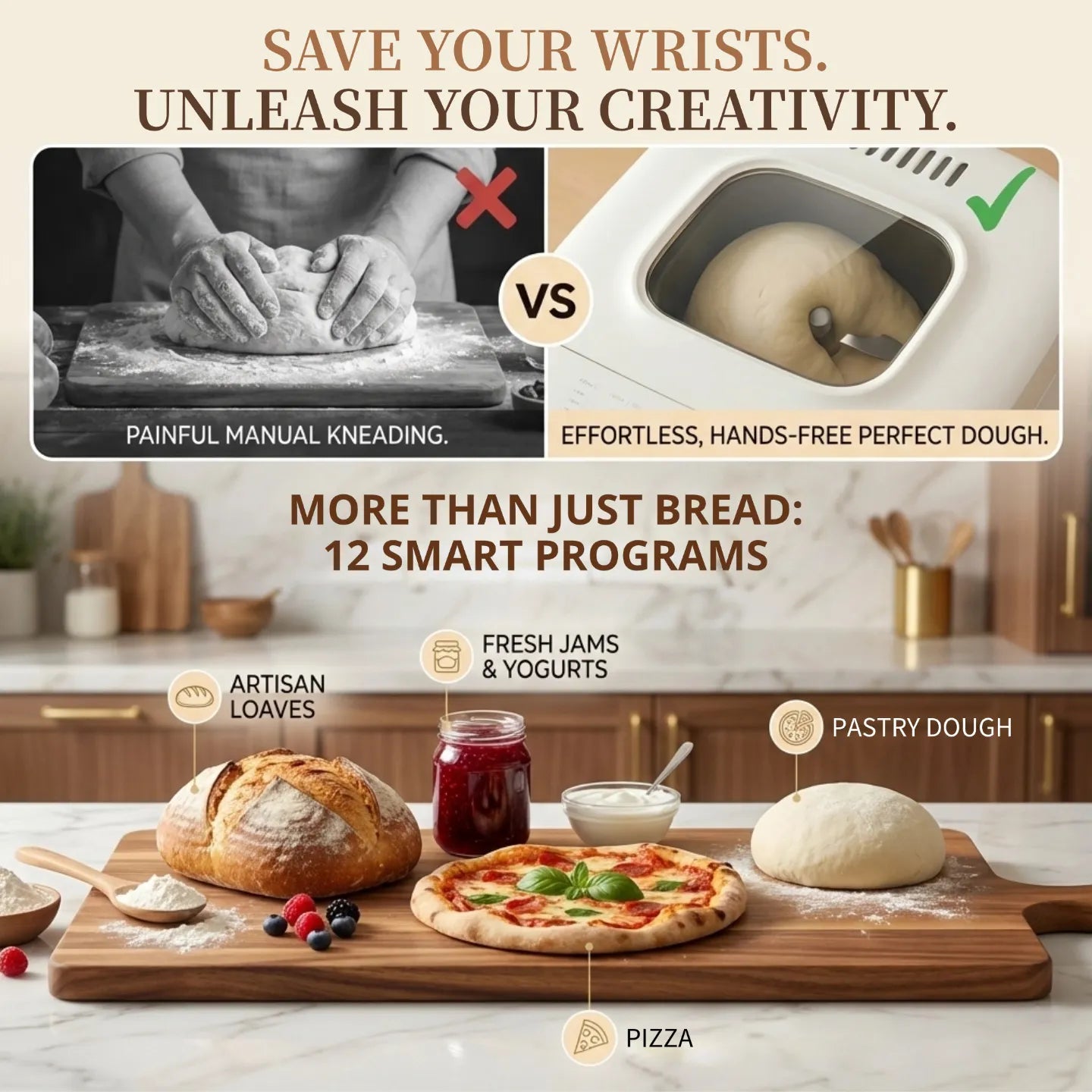 No Kneading: Save your hands. Our motor handles the heavywork quietly.